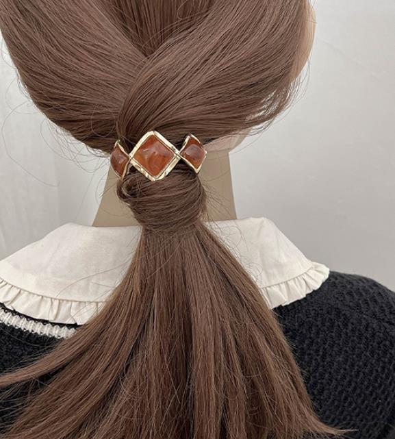 ゆるめに結んだ髪につけるだけで、オシャレなアレンジが完成。